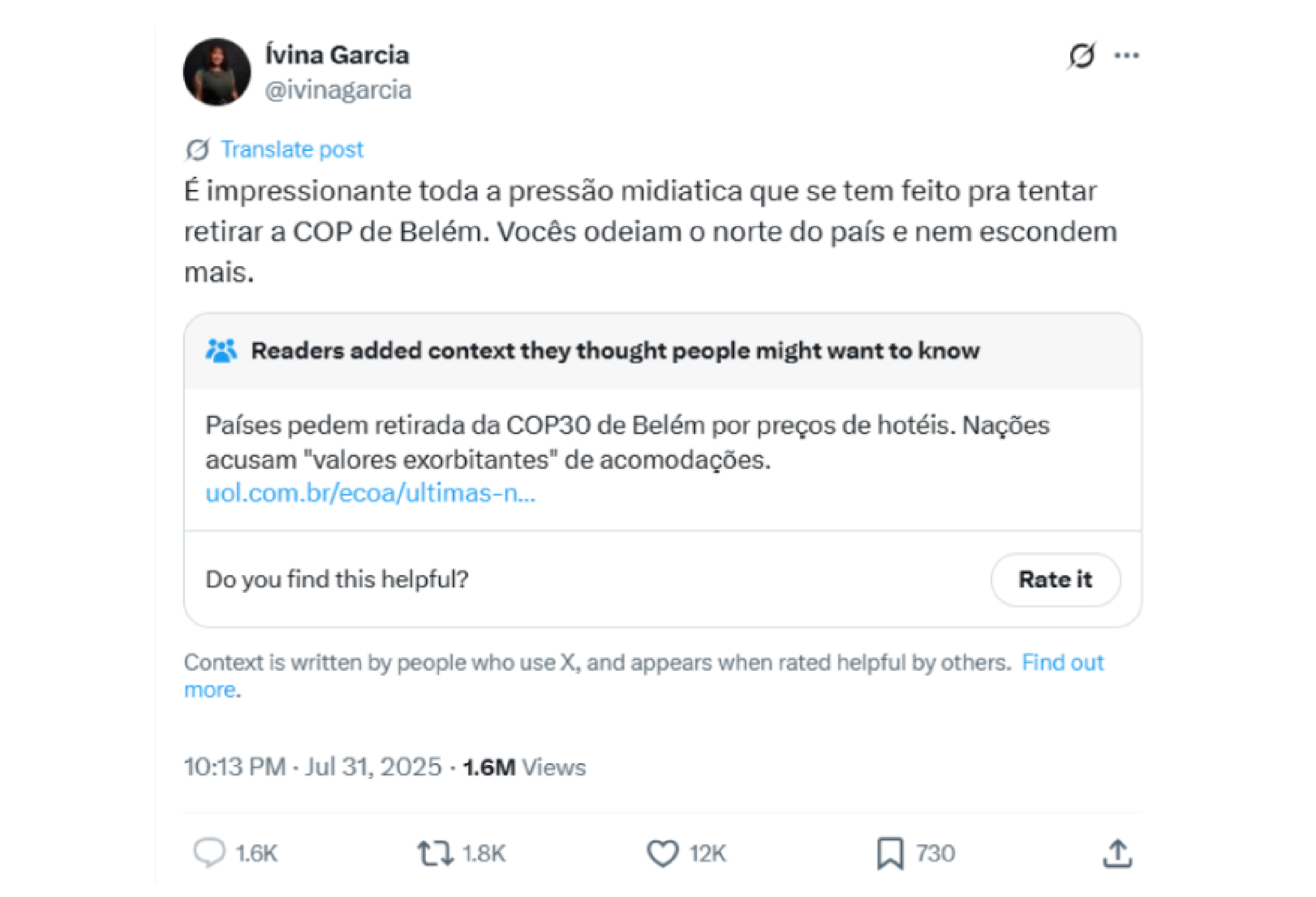 Por outro lado, as menções positivas, ainda que em menor volume, destacam o potencial simbólico e estratégico da COP30. Nas redes, os elogios concentram-se no discurso do presidente Lula na ONU, quando anunciou o Fundo de Florestas Tropicais para Sempre (TFFF), e na importância da Amazônia como território central para a agenda climática global. Essas publicações apresentam visões mais otimistas, que associam o evento à liderança ambiental do Brasil, à proteção das florestas tropicais e à oportunidade de diálogo entre países do Sul Global.
