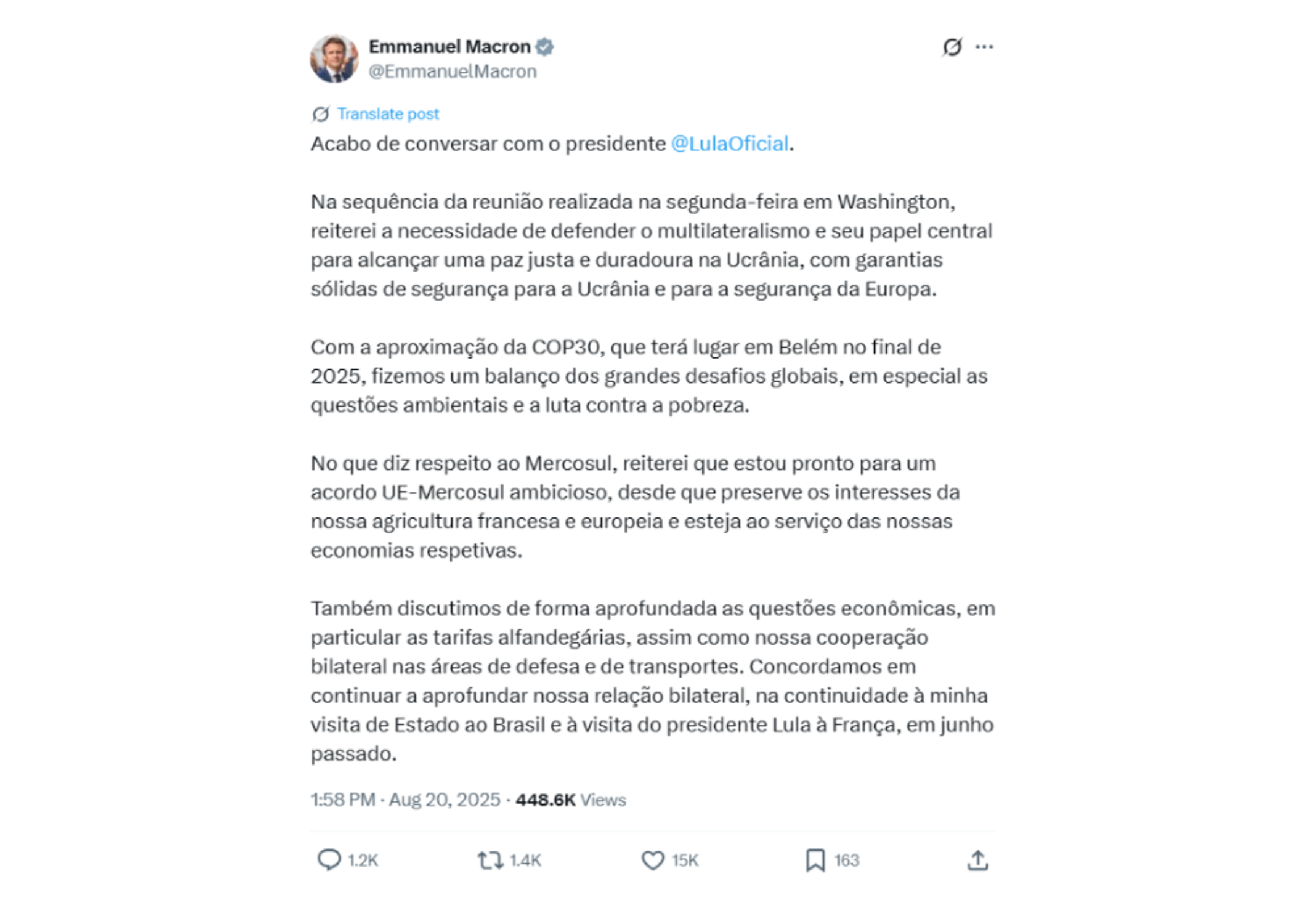 - E o discurso do presidente Lula na ONU, com o anúncio do Fundo de Florestas Tropicais para Sempre (TFFF).